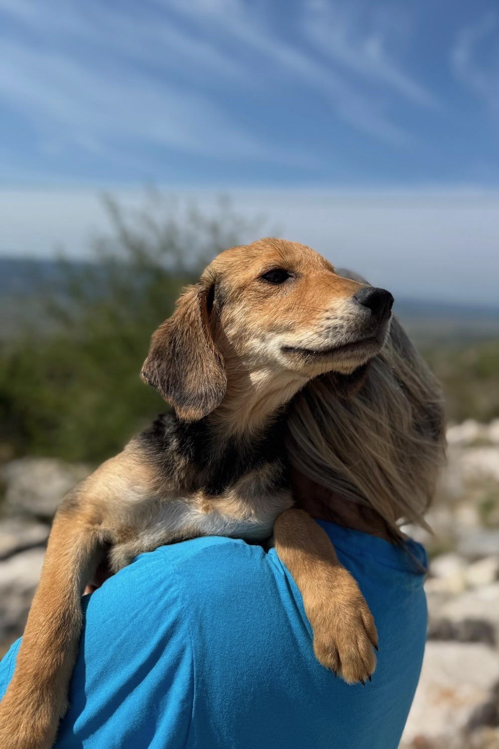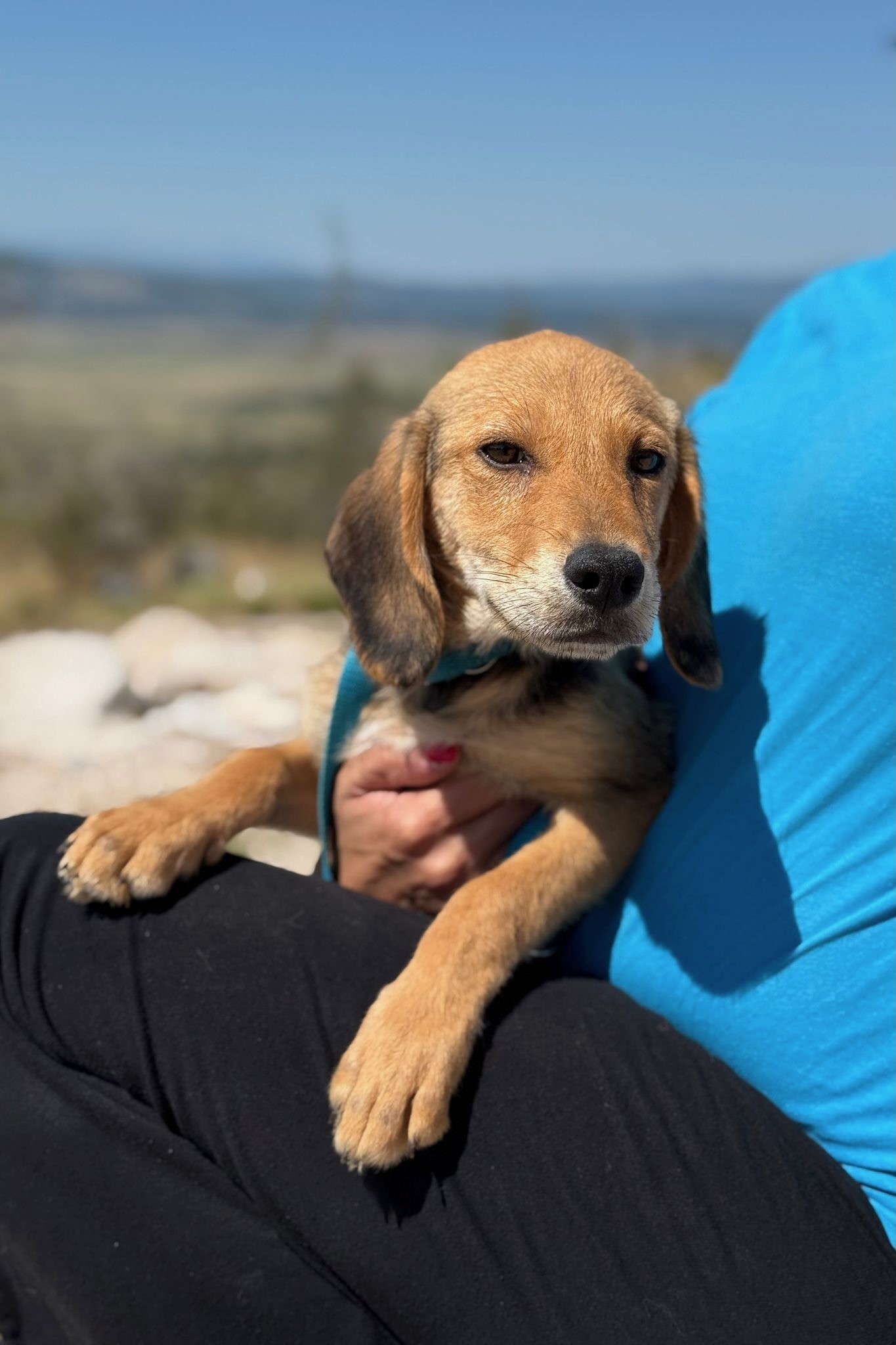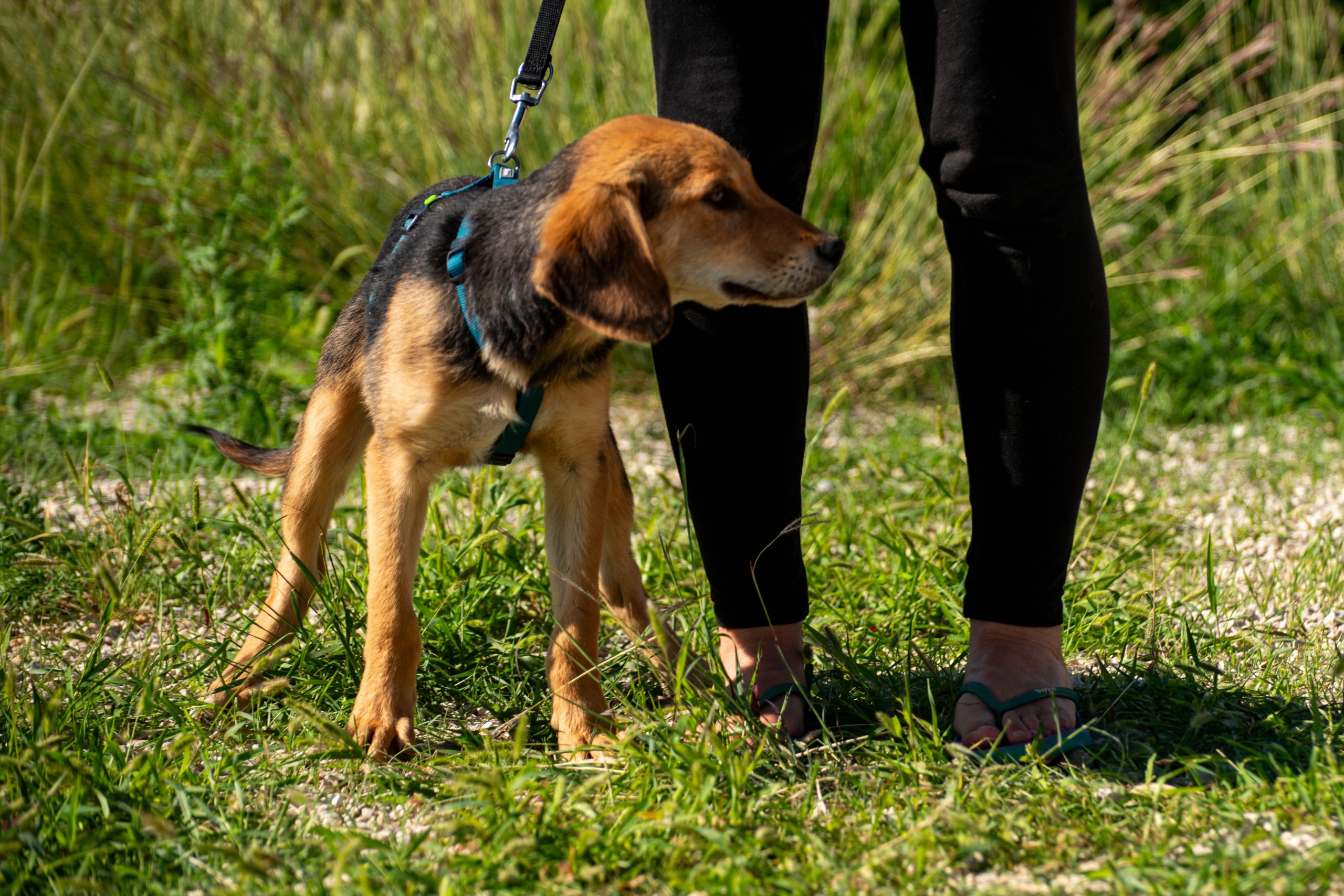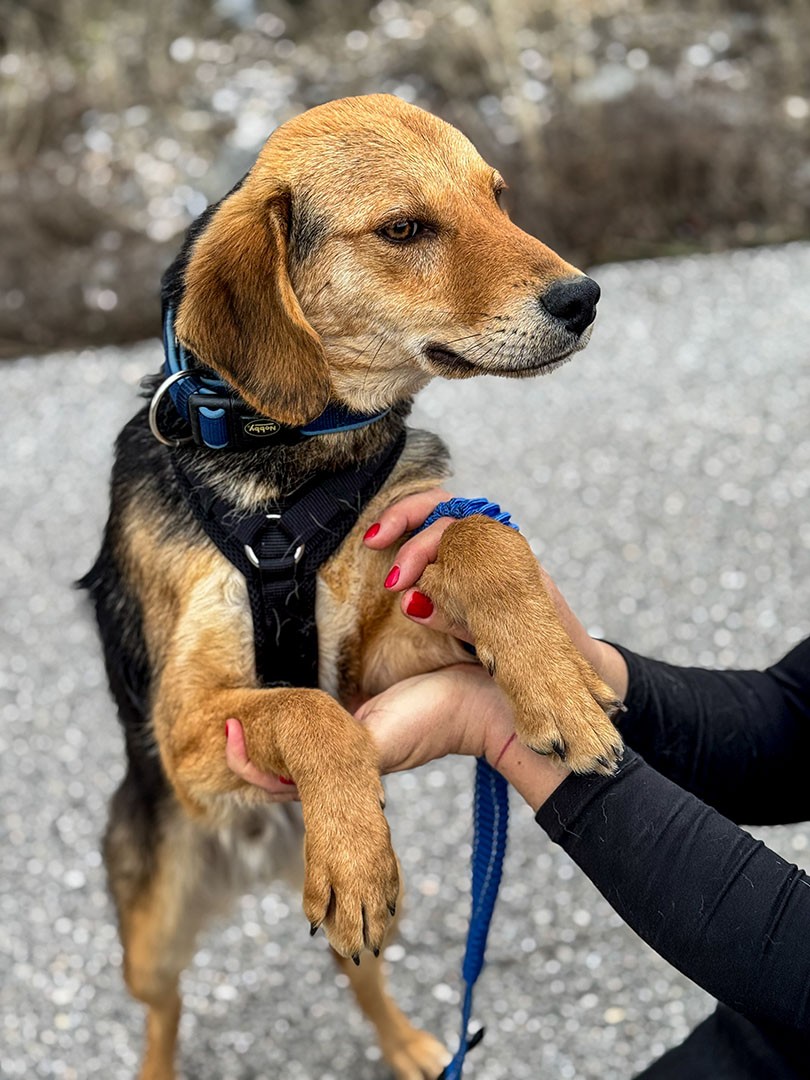 Arlo ist ein Jagdhundmix und wird vermutlich mittelgroß. Er freut sich über den Besuch einer passenden Hunde(halter)schule, in dem ihr gemeinsam das Hunde-Einmaleins lernen (oder auffrischen) und euch noch besser kennenlernen könnt.