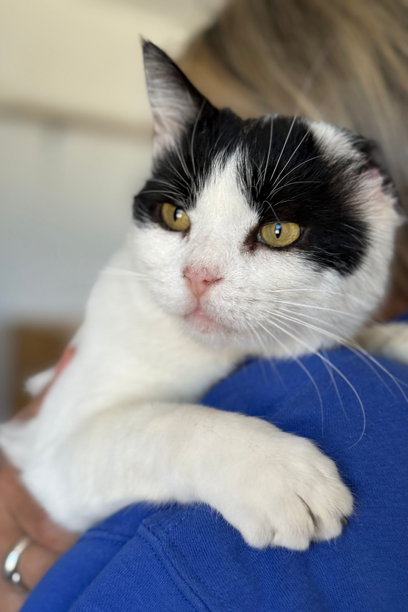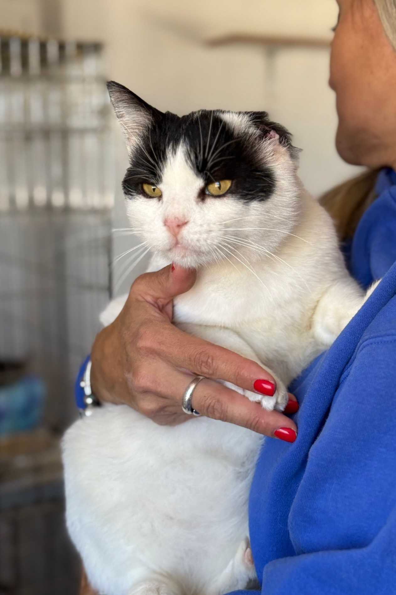 Eines Tages hat mich eine liebe Person bemerkt, weil mein Ohr verletzt war. Ab da ging’s bergauf: Tierarzt, Untersuchungen, eine OP und den Weg der Genesung, volles Programm. Das Ohr musste zwar ab, aber mein Charme ist geblieben – und zwar in Übergröße!