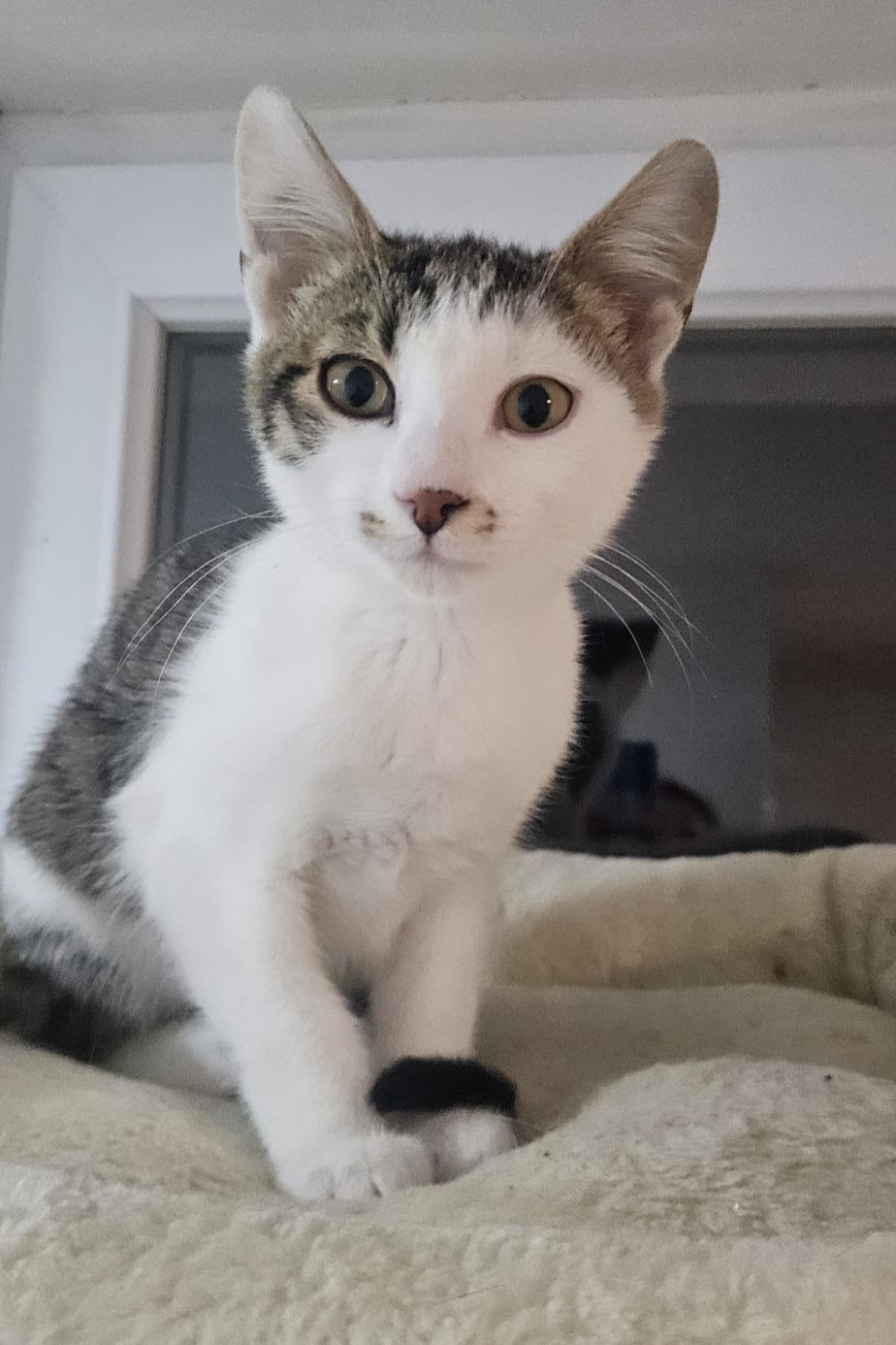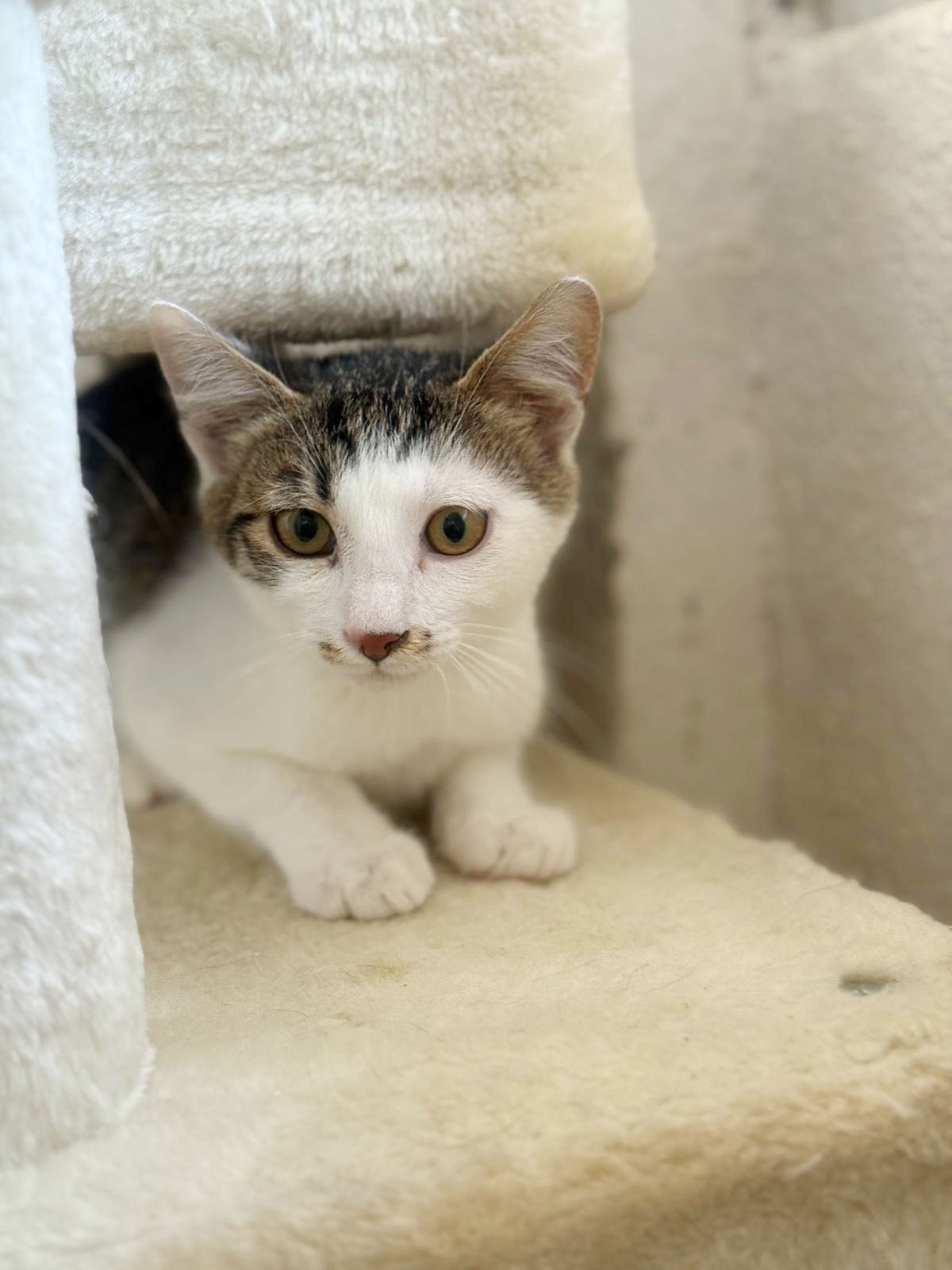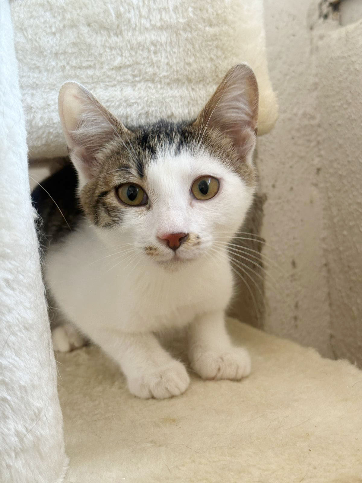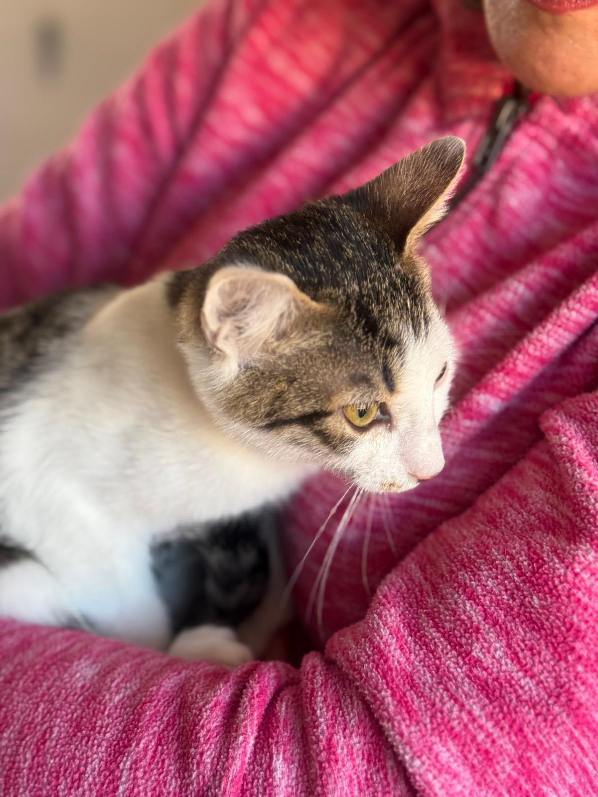 Beniko ist ein etwa drei Monate alter, grau-weiß getigerter Kater, der in unserem Streunerdorf in Mostar lebt. Von Anfang an zeigt er ein besonders sanftes, sensibles Wesen. Er spielt gerne, aber immer behutsam und vermeidet grobes Toben. Viel wichtiger als wilde Spiele ist ihm die Nähe zu anderen Katzen – Beniko fühlt sich so richtig wohl, wenn er seine Katzenfreunde um sich herum hat.