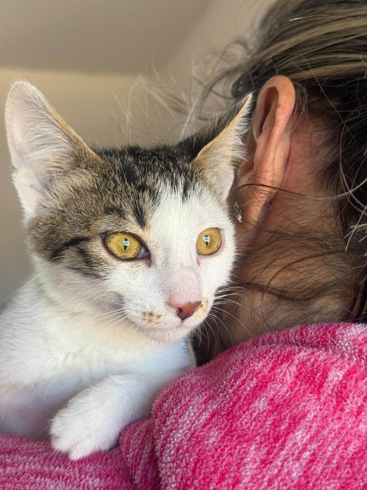 Menschen gegenüber zeigt er sich liebevoll, etwas vorsichtig, aber sehr zugewandt, sobald er Vertrauen gefasst hat. Wer einem zarten, sensiblen Katerchen ein behütetes Für-immer-Zuhause schenken möchte, findet in Beniko auf jeden Fall einen treuen kleinen Gefährten