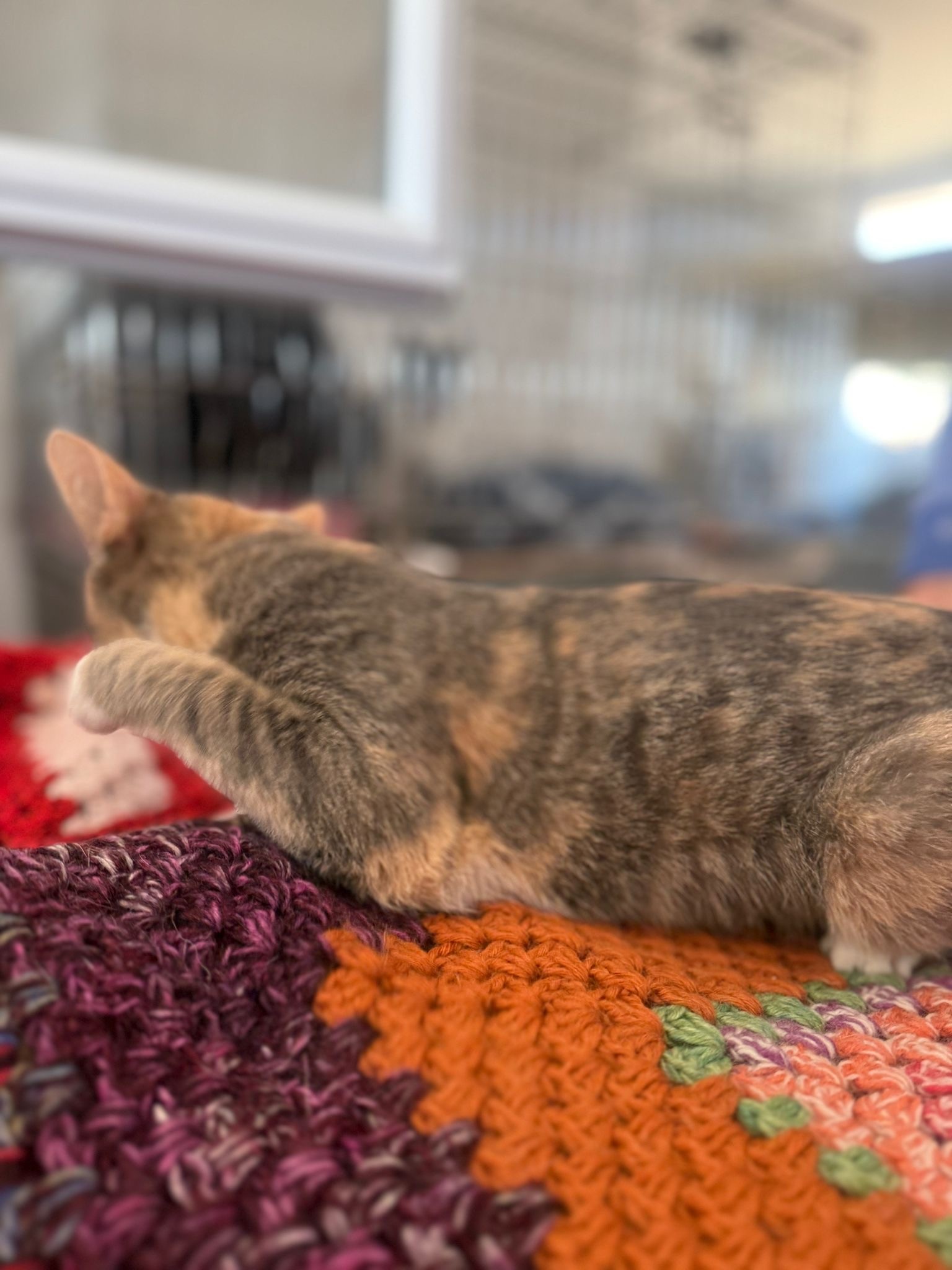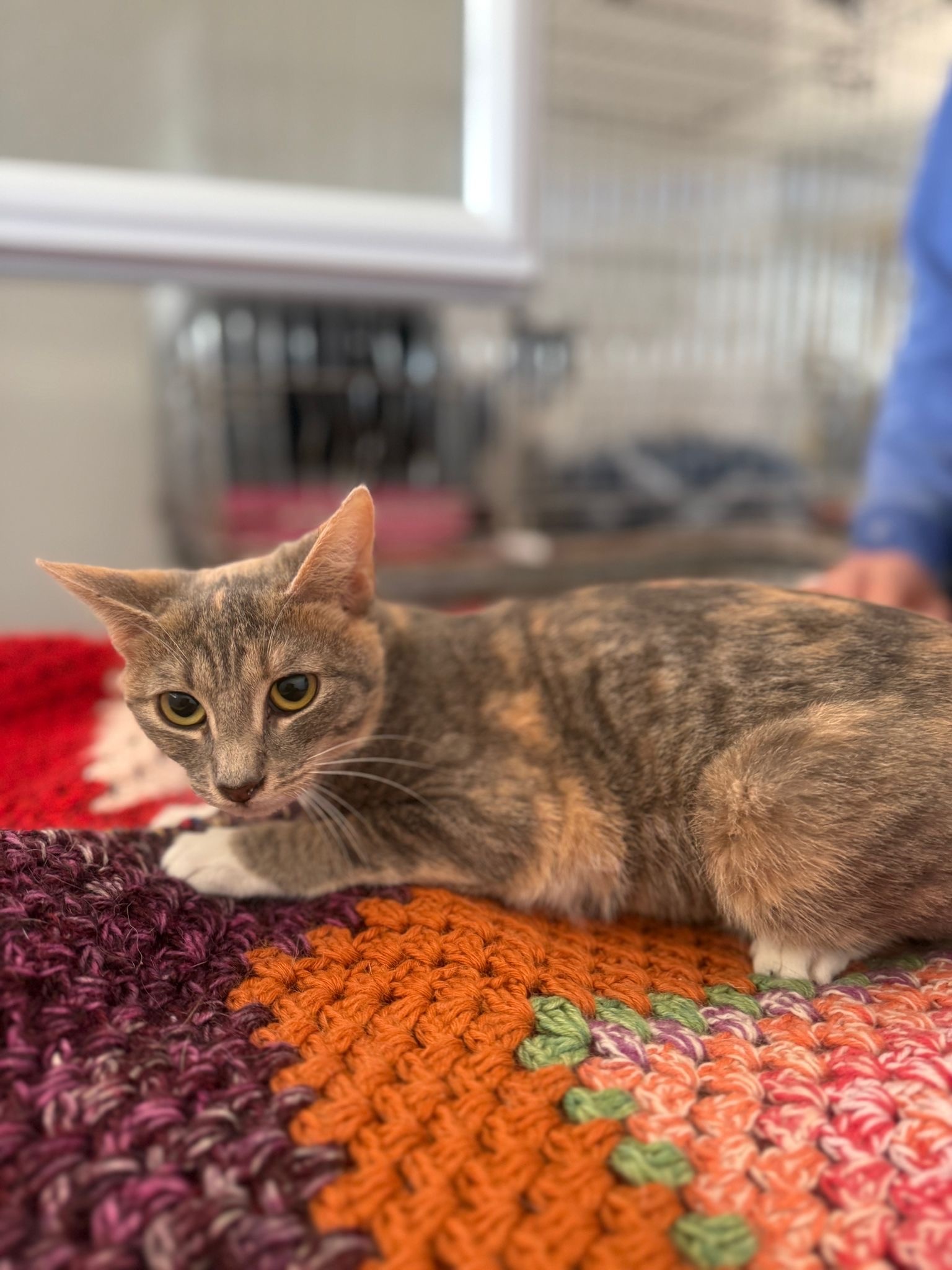 Chrissi sucht ein ruhiges Zuhause in Wohnungshaltung. Ein gesicherter Balkon wäre für sie sehr schön, damit sie frische Luft genießen und entspannt das Geschehen draußen beobachten kann.