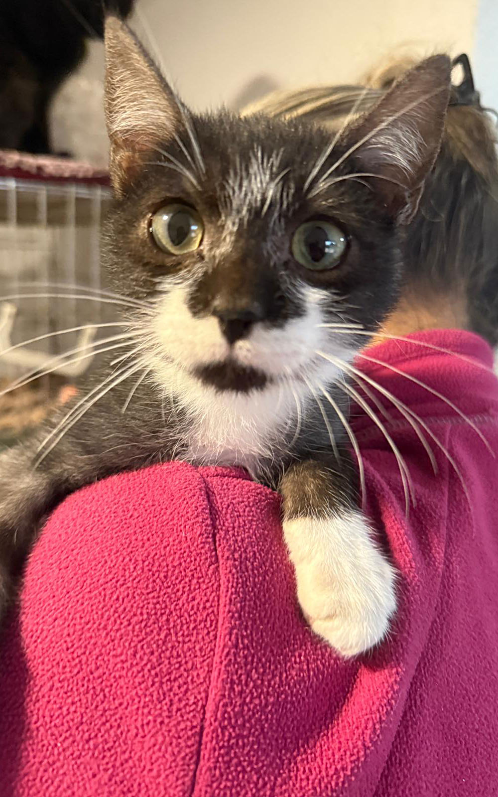 Die drei sind wahre Herzenskätzchen: unglaublich verschmust, verspielt und menschenbezogen. Sie genießen jede Aufmerksamkeit, spielen voller Begeisterung und fühlen sich sowohl mit Menschen als auch mit anderen Katzen sehr wohl. Daher möchten wir sie entweder zu zweit oder zu einem bereits vorhandenen, sozialen Artgenossen vermitteln.