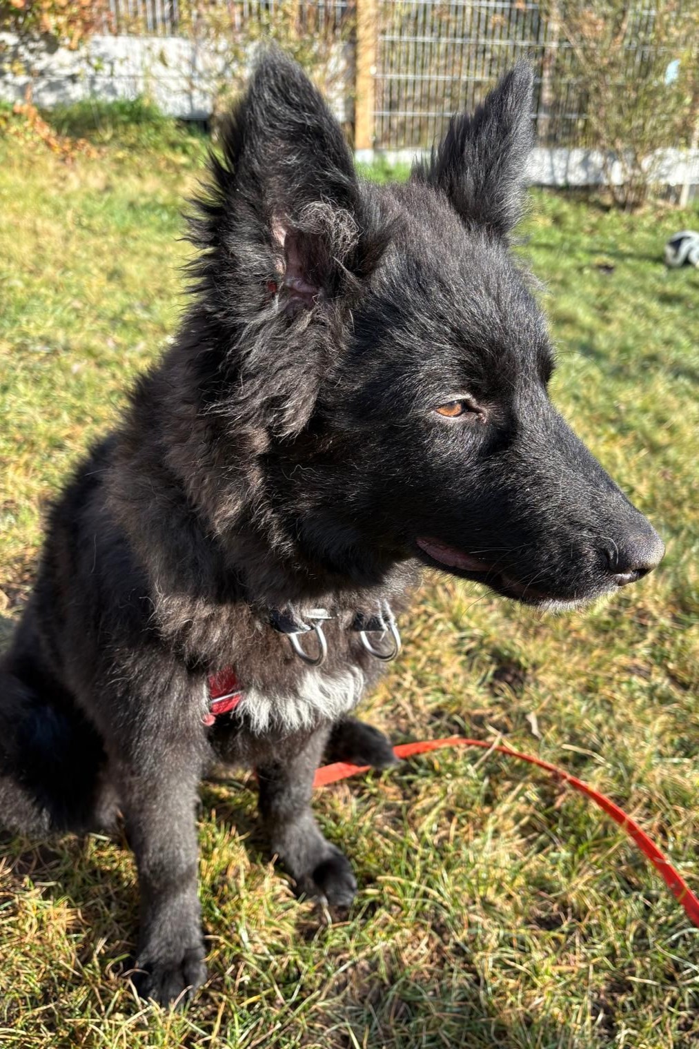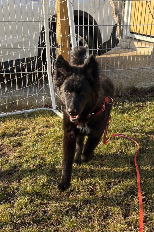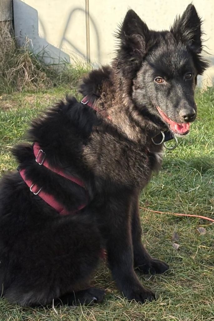 In seiner Pflegestelle zeigte er sich vom ersten Moment an aufgeschlossen, verschmust und wissbegierig. Mit großer Neugier erforscht er alles, was ihm vor die Nase kommt, ob Kleidung oder Fundstücke aus dem Garten.