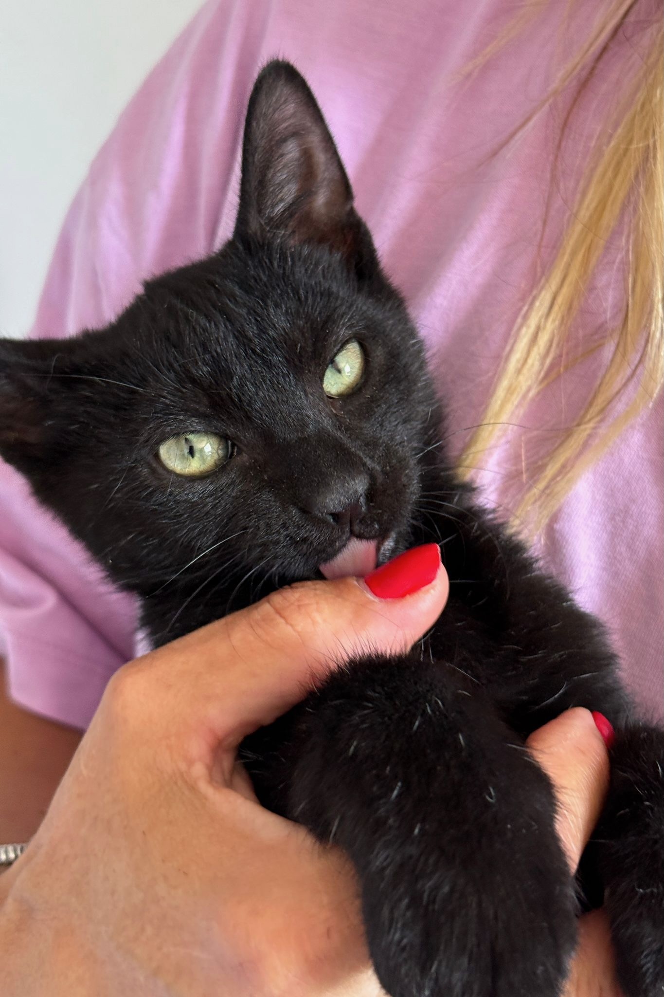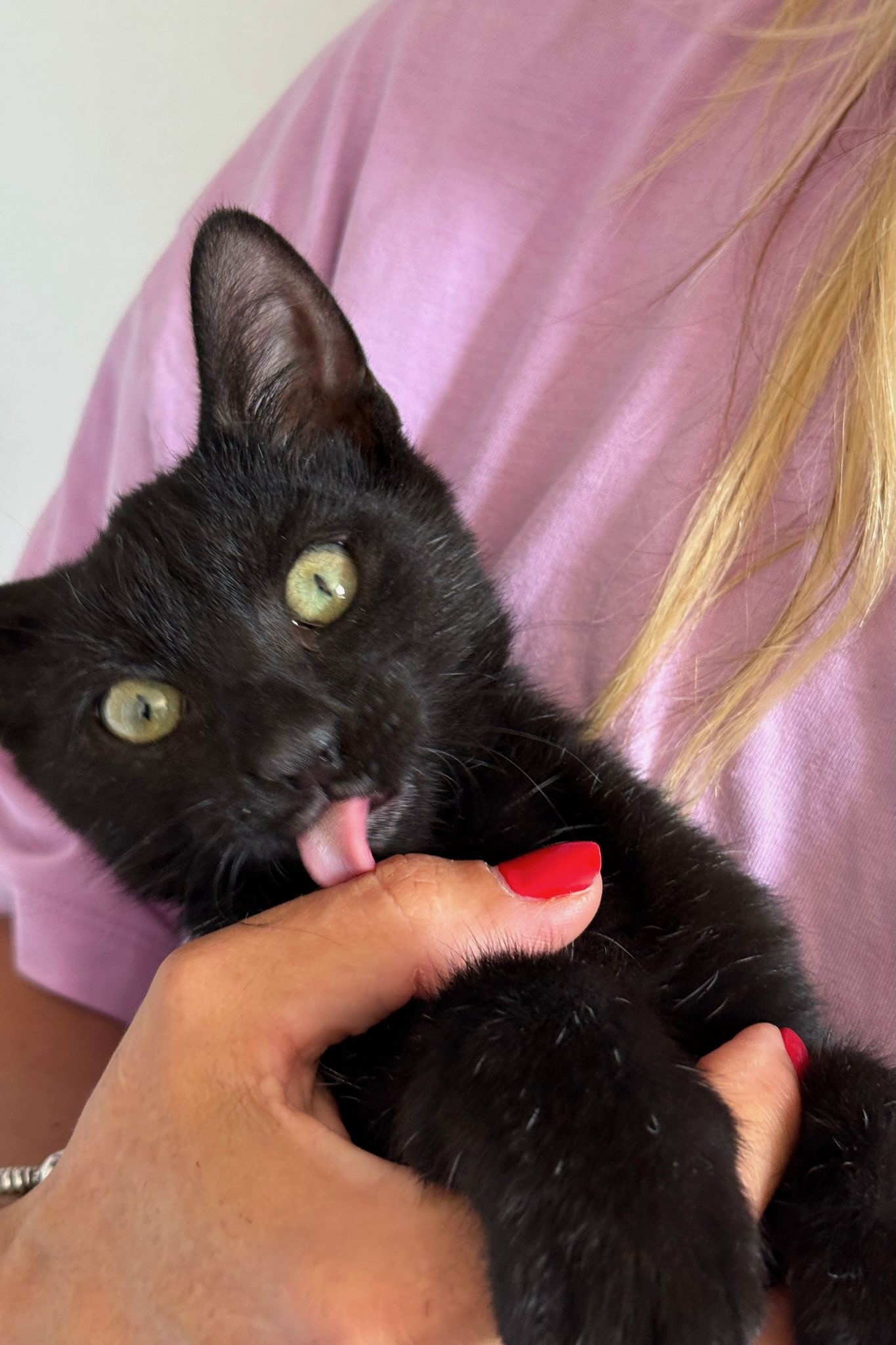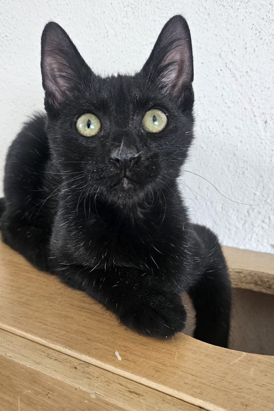 Abgesehen von seinem Drang in die Vertikale ist Merlino ein normales Kitten, das gern futtert, spielt, kuschelt und die Welt entdeckt.