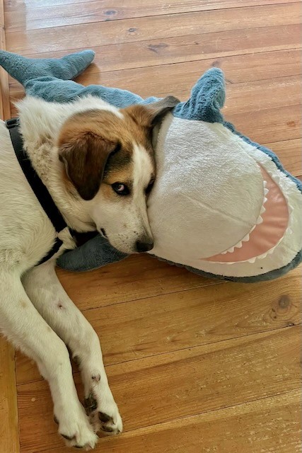 Sharky ist ein Herdenschutzhund-Mix mit ca. 60 cm Schulterhöhe. Er ist daher kein Hund für Hundeanfänger und sucht eine Familie mit Haus und Garten. Sharky meldet Ungewöhnliches, ist aber kein großer Beller. In Summe ist er im Haus eher sehr unauffällig und der perfekte Homeoffice-Kollege.