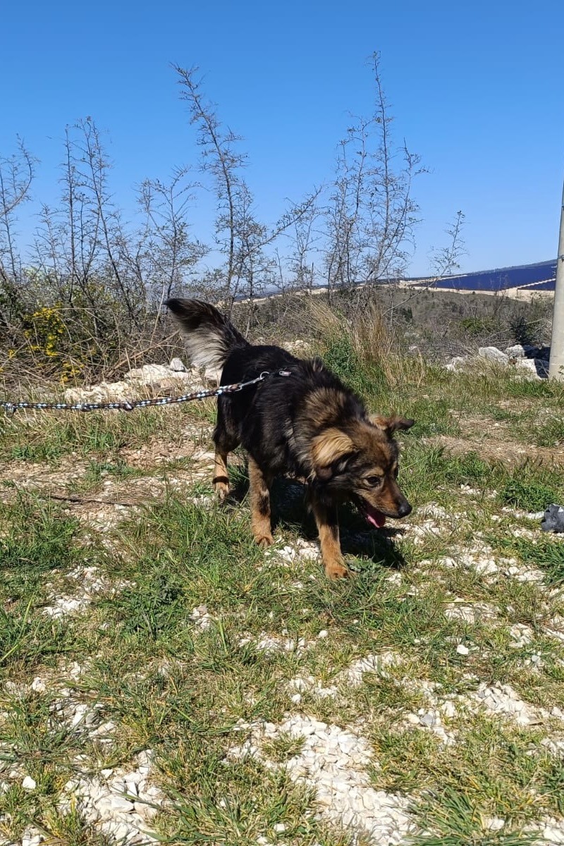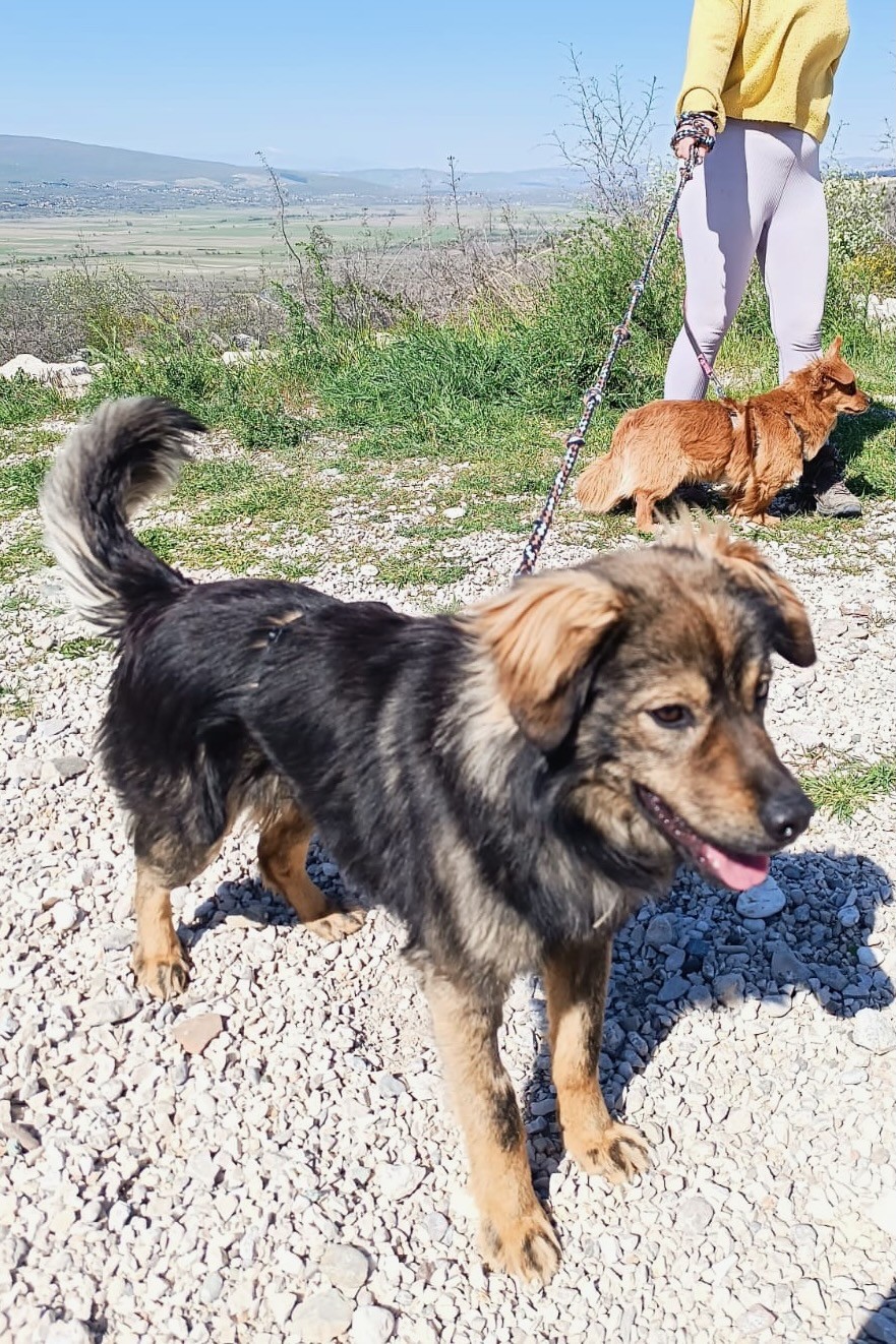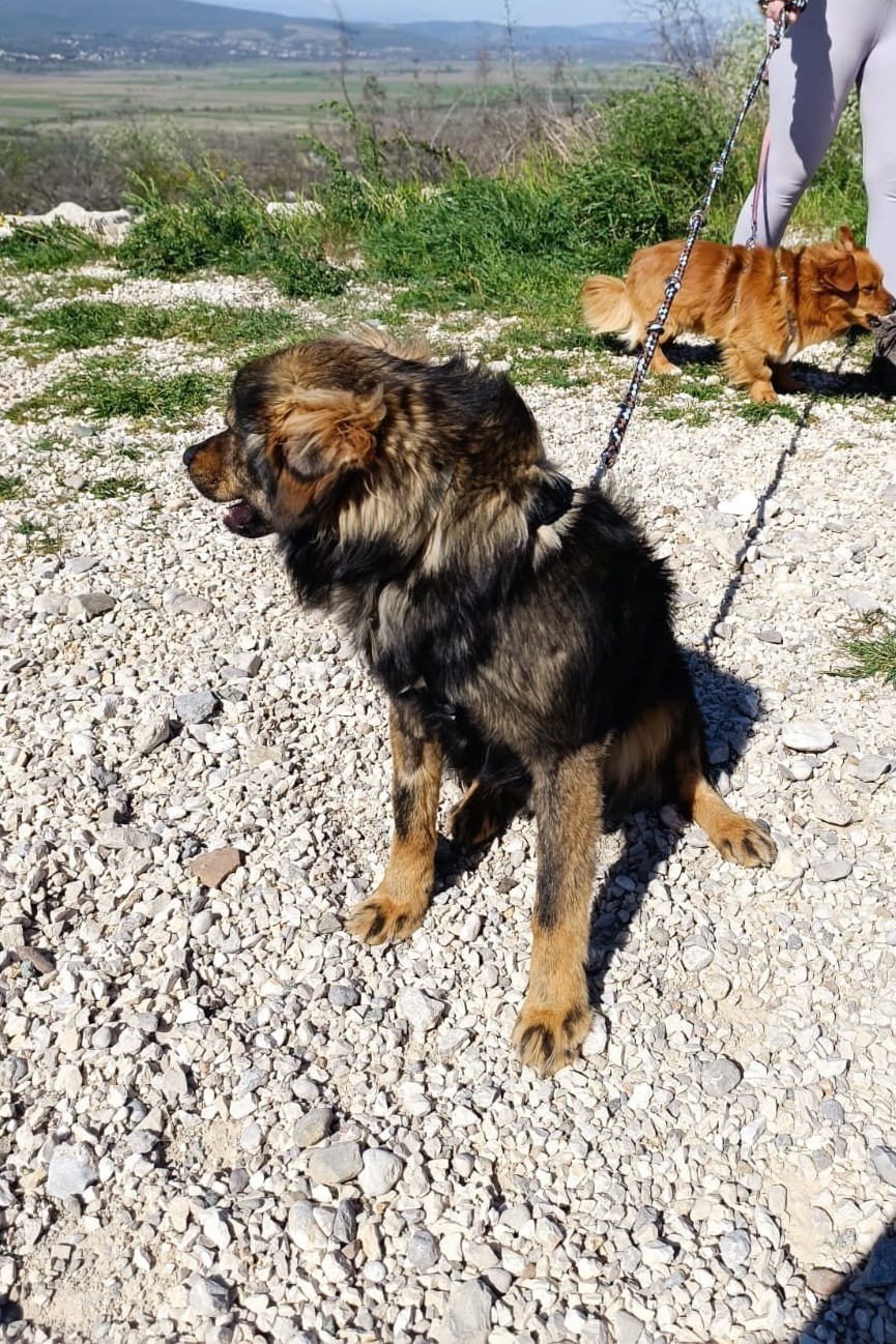In unserem Streunerdorf in Mostar. Tomtom kann am 22.05.2026 mit nach Deutschland reisen und sucht noch eine passende Pflege- oder Endstelle.
