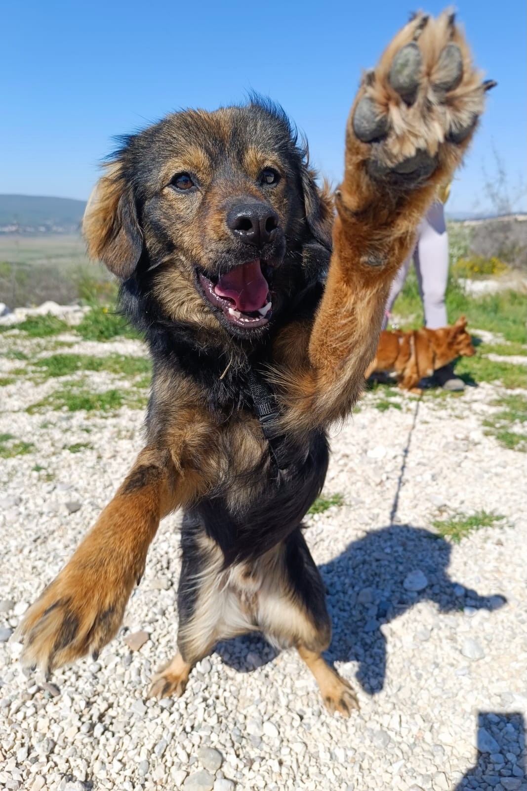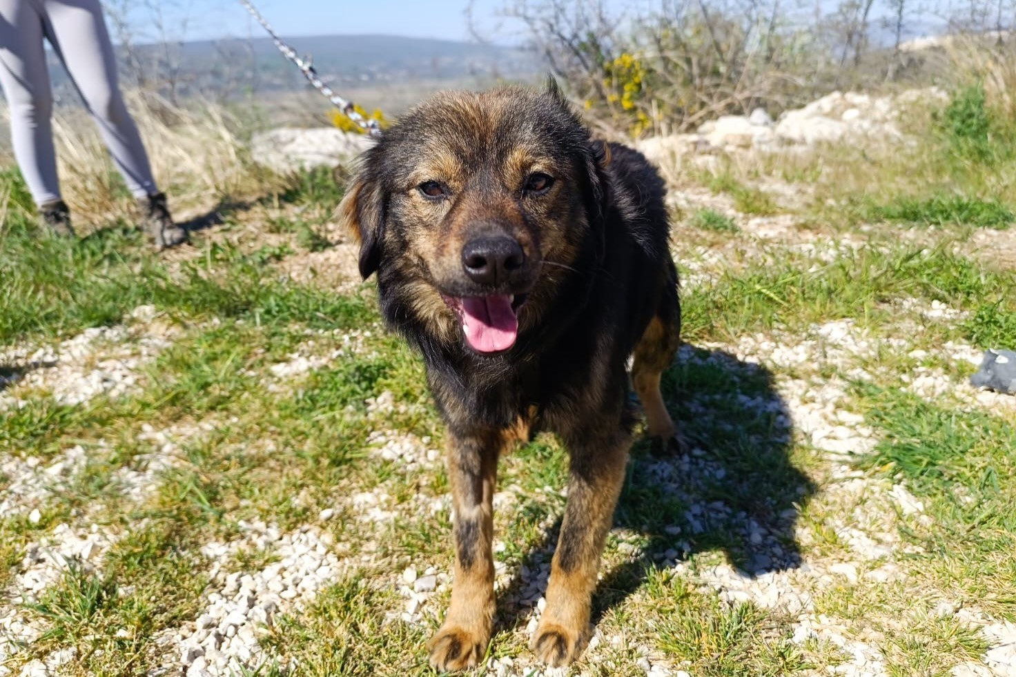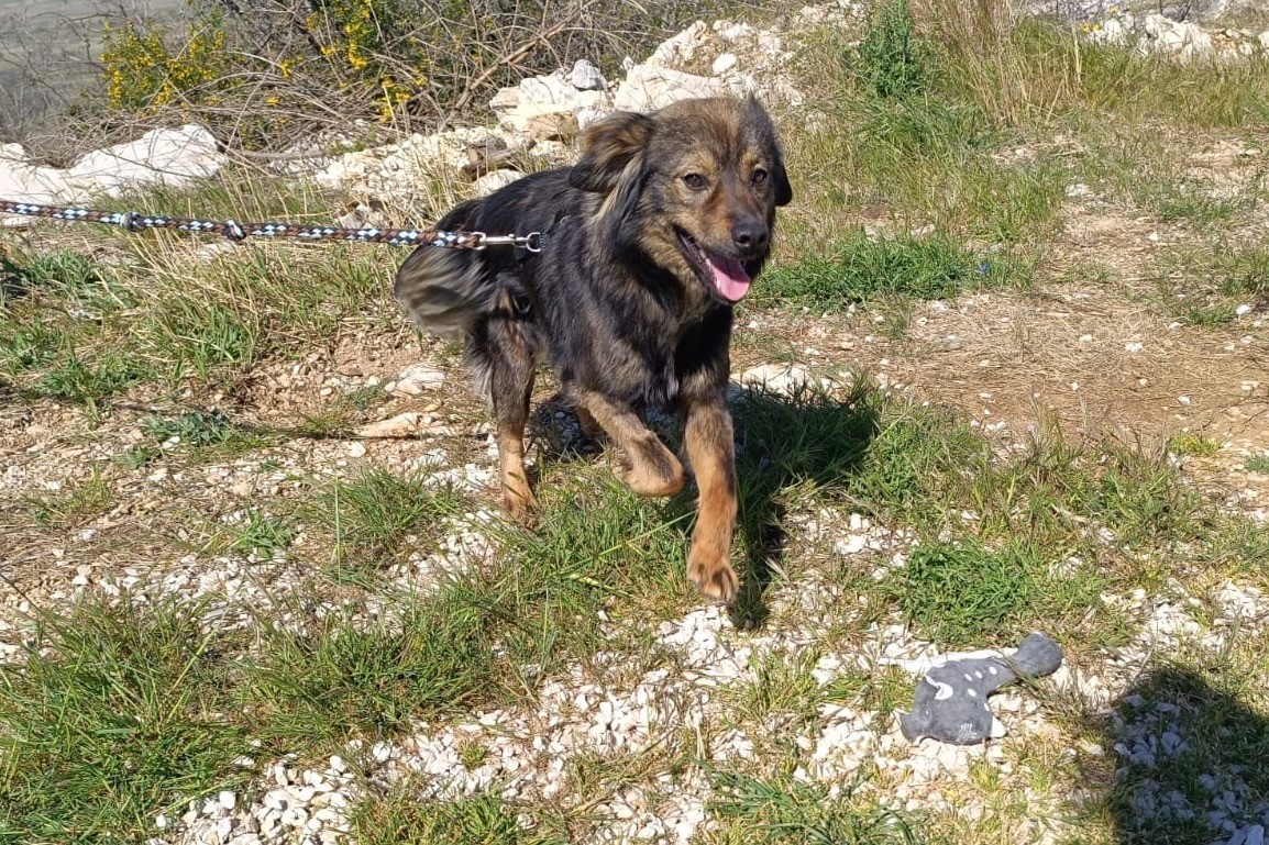 In unserem Streunerdorf in Mostar. Tomtom kann am 22.05.2026 mit nach Deutschland reisen und sucht noch eine passende Pflege- oder Endstelle.
